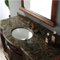 Simple, elegant indoor uses for stone remnants including a vanity countertop, backsplash, and a bowl sink.